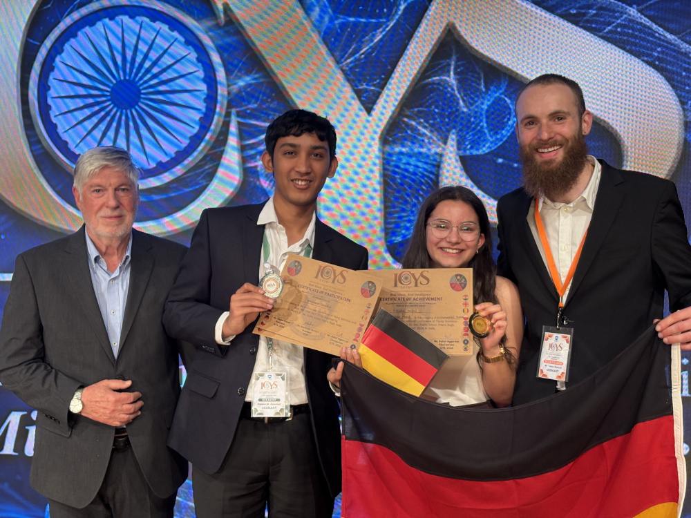 Wir waren mit einem intelligenten Gipsarm zur Genesungsüberwachung, der Wirkung von Metallionen auf Katalase, einer Mathearbeit zur Lösung von Differentialgleichungen, Möglichkeit der Wassergewinnung mit Hochspannung und einem Lösungsroboter für einen Rubik-Ikosaeder im Rennen.